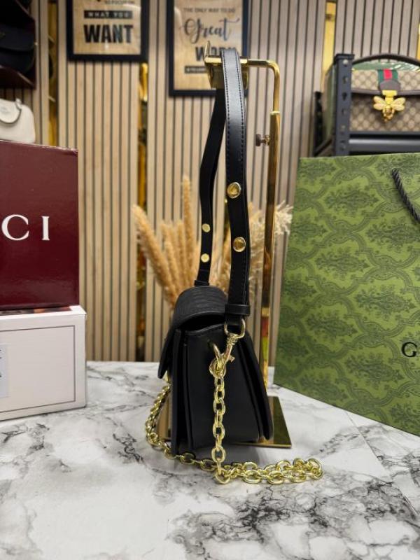 GUCC_I GG CANVAS JACQUARD SHOULDER BAG WITH DOUBLE OG BOX AND DUST BAG INCLUDES CARRY BAG (46377-BLACK)