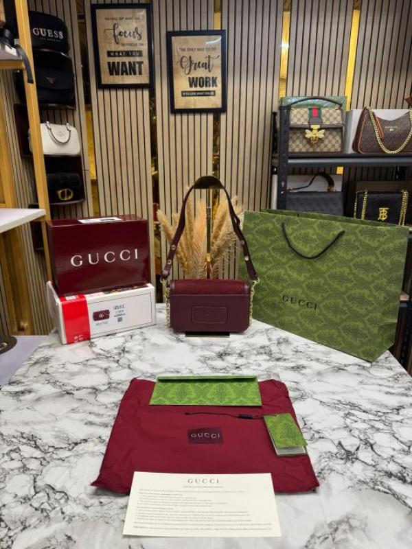 GUCC_I GG CANVAS JACQUARD SHOULDER BAG WITH DOUBLE OG BOX AND DUST BAG INCLUDES CARRY BAG (46377-RED)